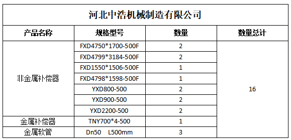 尊敬的李經(jīng)理,感謝您對河北中浩 產(chǎn)品信任與選擇。很高興通知您,您在河北中浩訂購非金屬蒙皮膨脹節(jié)、金屬波紋補償器、金屬波紋軟管等產(chǎn)品, 已經(jīng)完成生產(chǎn)、檢驗、包裝等全部工作,請您做好收貨準(zhǔn)備,到貨后及時查驗。